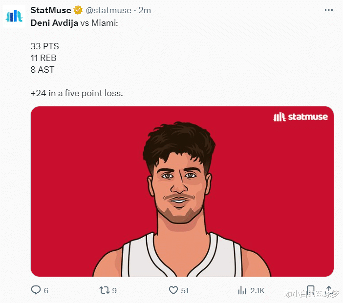 Avdija chơi 36 phút trong trận, sút 12 trong số 21 quả, 3 trong số 9 quả ném ba điểm, 6 trong số 7 quả ném phạt, 33 điểm, 11 lần bật lại, 8 pha kiến tạo và 1 lần cản phá. Tỷ lệ bắn của anh ấy là 57,1%, tỷ lệ bắn ba điểm của anh ấy là 33,3% và giá trị cộng trừ của anh ấy là +24. Đúng, anh ấy đã đánh bại đội 24 điểm trên sân và cũng thua. Nó quá bi thảm!