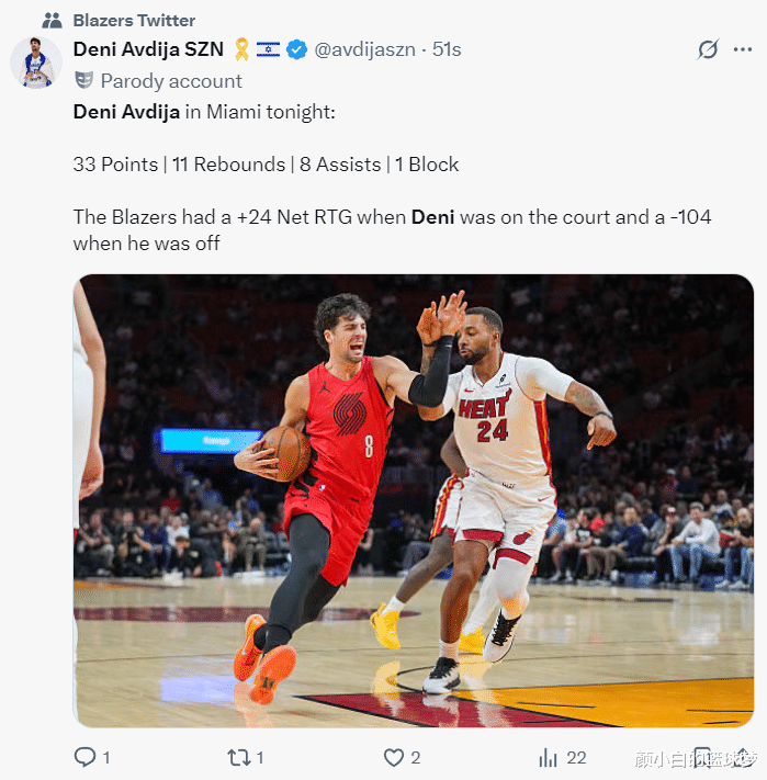 Theo thống kê từ các phương tiện truyền thông dữ liệu, Trail Blazers là +24 khi Avdija có mặt trên sân và -104 khi Avdija ở ngoài sân. Đây là một trận đấu điển hình trong đó toàn đội Trail Blazers hạ gục một người. Avdija xứng đáng là thủ lĩnh mới của Pau.