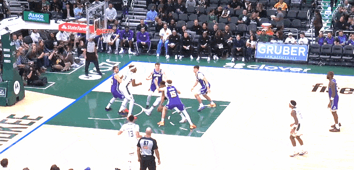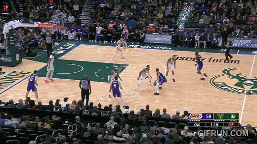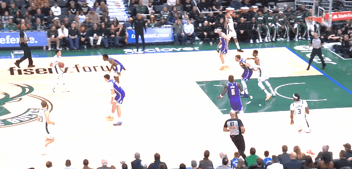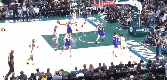 Giannis thực hiện một pha đột phá nhanh và Luka bước tới để cản phá. Giannis đẩy mạnh khiến Luka ngã xuống đất, suýt phạm lỗi.