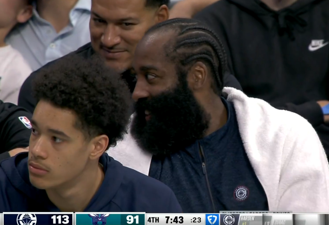 Đối mặt với Hornets, đội xếp thứ tư tính từ cuối bảng ở Eastern Conference, Harden 36 tuổi mơ ước trở lại thời kỳ đỉnh cao của mình. Trong hiệp đầu tiên, Harden chơi 12 phút và bùng nổ. Anh ta bỏ qua hàng phòng ngự và ghi điểm một cách điên cuồng. Chỉ trong một hiệp đấu, anh ấy thực hiện 9 trong số 12 cú sút, 5 trong số 7 quả ba điểm và 4 trong số 6 quả ném phạt. Anh ghi được 27 điểm, dẫn đội dẫn trước 38-30 với 8 điểm; trong hiệp hai, Harden thực hiện một pha cản phá và đánh một quả ba điểm khác từ bên ngoài. Sau giờ nghỉ giải lao, Harden chơi 19 phút 29 giây, thực hiện 12 trong số 17 cú sút, 6 trong số 10 quả ba điểm, 5 trong 7 quả ném phạt và ghi được 35 điểm, 1 rebound và 1 kiến tạo.